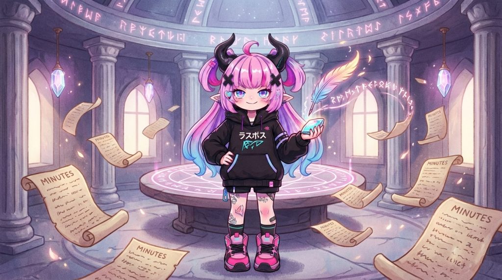 ふん、会議のたびに議事録を書くなど…わらわも正直しんどいと思っておった。(え、これってもしかして解決できるの…?)